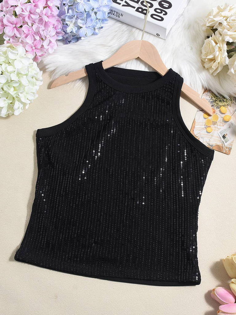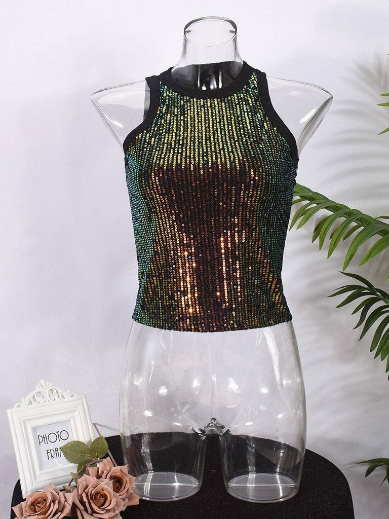 Leopard print crop sequin party tank top_HWJ01487