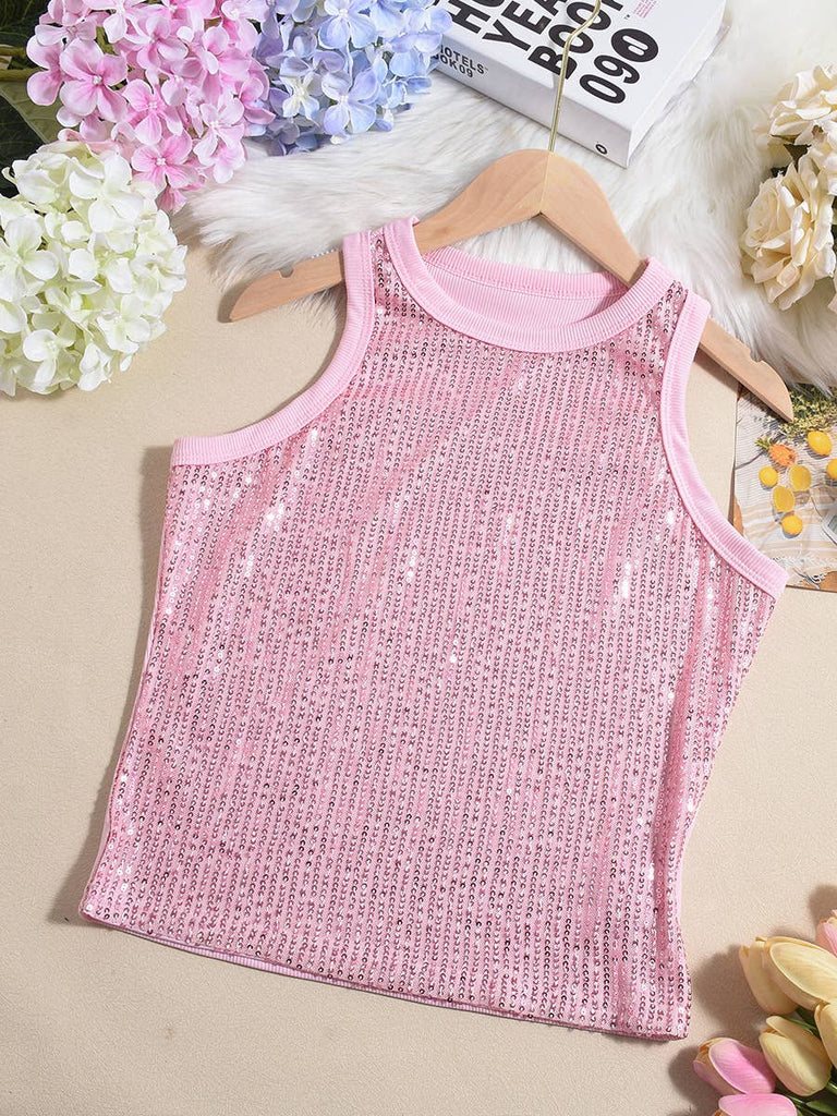 Party vest leopard print sequin tank top: Pink / M