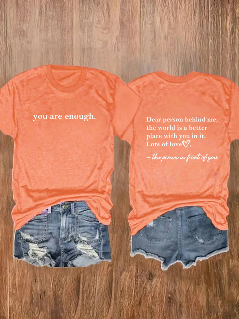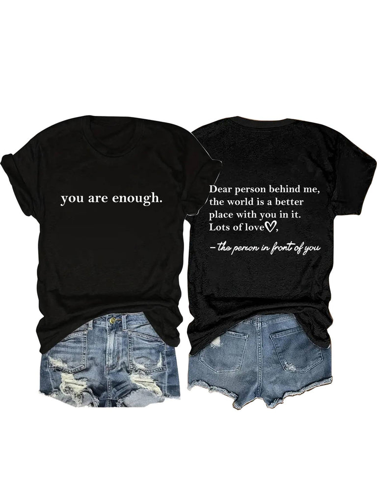 you are enough slogan basic short sleeve t-shirt_HJY03007