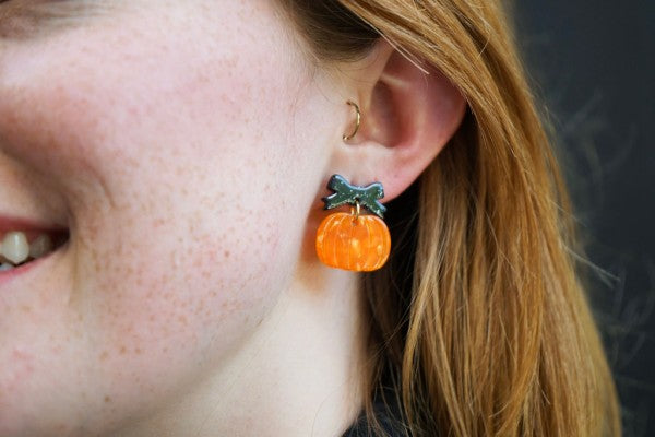 Introducing our Bow Pumpkin Patch Earrings, the perfect blend of sweet and seasonal. These charming earrings feature a classic pumpkin design topped with a whimsical bow, adding a unique and playful touch to your autumn style. The lightweight dangles sway gracefully, making them a fun and festive accessory for everything from a hayride to a fall festival.