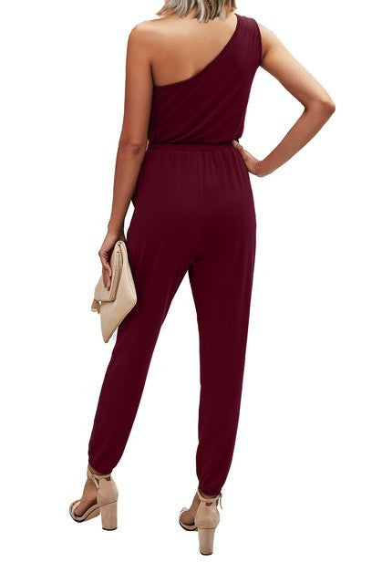 One Shoulder Sleeveless Elastic Waist Jumpsuit