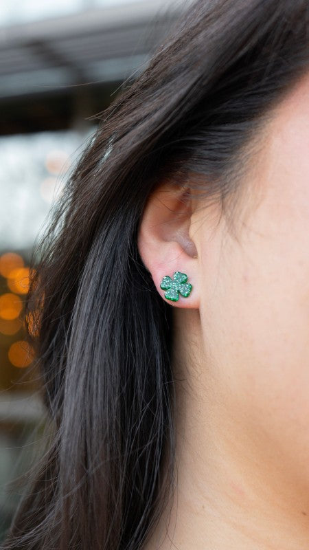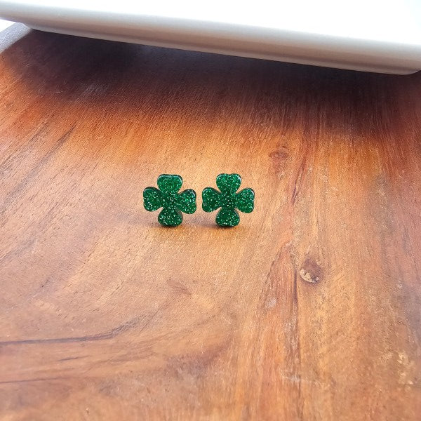 Clover Studs - Green Glitter