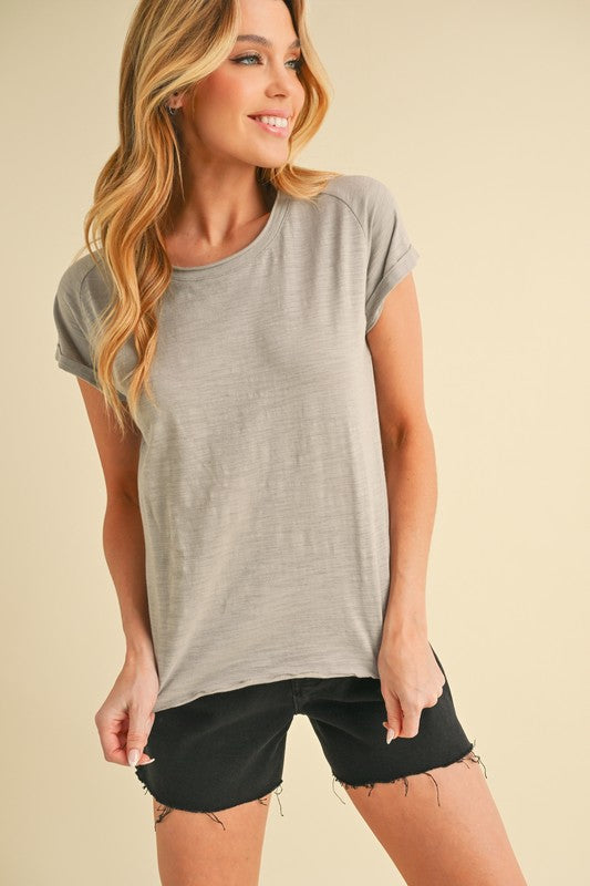 Our Gwen baby tee is featured in a classic baby silhouette with capped sleeves and cabbage lettuce hem finish for a true lived-in look is a staple every season.