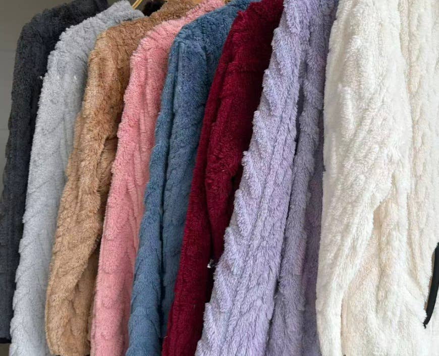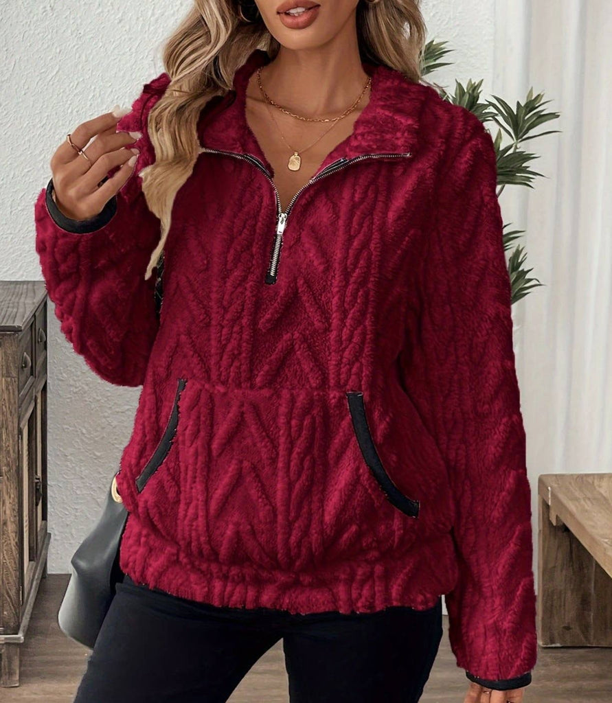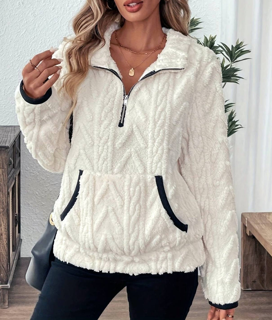 Winter pocket texture zip-up collar fleece teddy sweatshirt